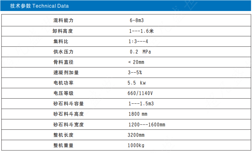 1)設置有三個料斗的螺旋配料攪拌機:水泥+砂石混合料+粉體速凝劑以及水噴淋系統 。噴淋水直接噴淋在砂石上,能實現水灰比≥20%,水泥通過閘閥調節添加量,水泥和砂石經過同軸不同直徑和螺距的螺旋葉片,實現水泥、砂石集料比為1:3--4的混合比例,經螺旋攪拌后,持續的輸送給噴漿機。